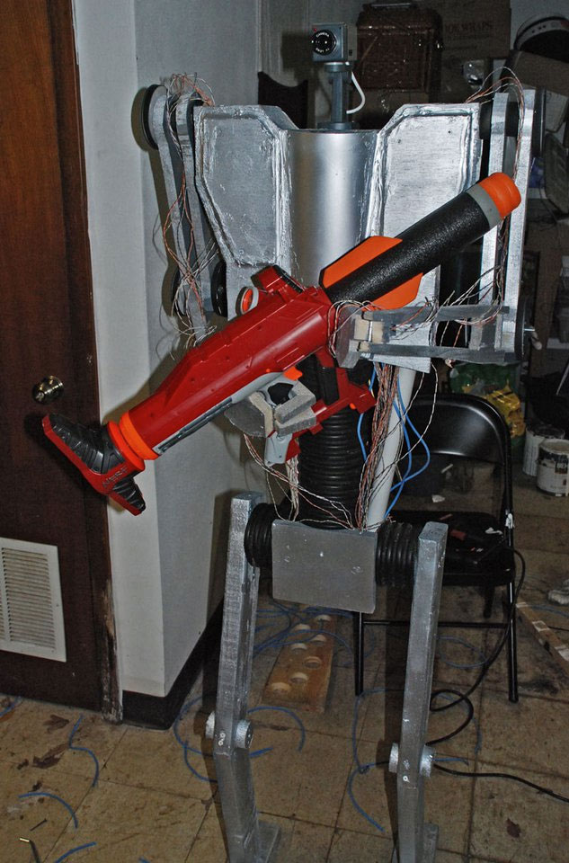 The bot, affectionately named “Goby” by my wife, currently resides in Brian’s basement, where we used it in the background of a scene we shot for our 2012 entry into the St. Louis 48 Hour Film Project. But if the name sticks, I think my lumber creation might have to make the move to our brewing HQ – Justin’s garage. Hope his wife won’t mind.