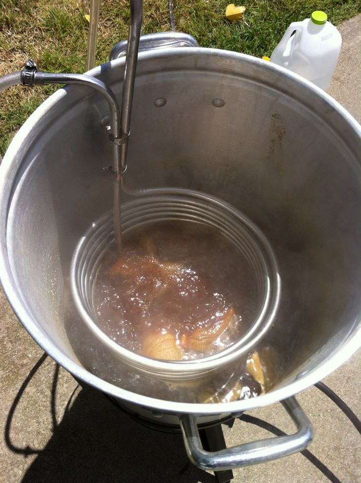 Ahh yes, I remember it well. I remember meeting up with Brian that fine Sunday morning so that we could run to Lowes and purchase a turkey fryer to use for our first burner and kettle. I remember going to Justin’s and setting up our equipment, and how annoyingly long and unnecessarily difficult it was to put the burner together. I remember the annoyance of running out of propane halfway through the boil, and having to make an emergency run for more. I remember how painstakingly long it took for us to chill our beer to fermentation temperature in the Summer heat.