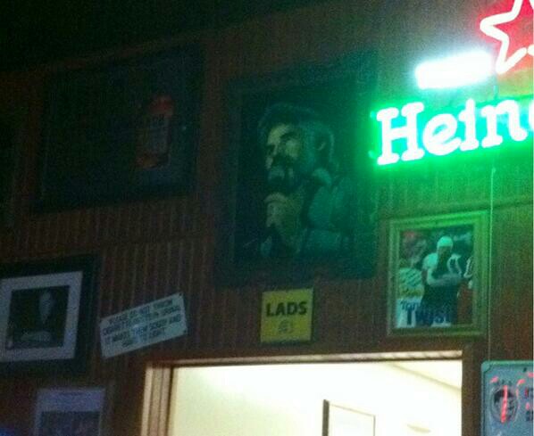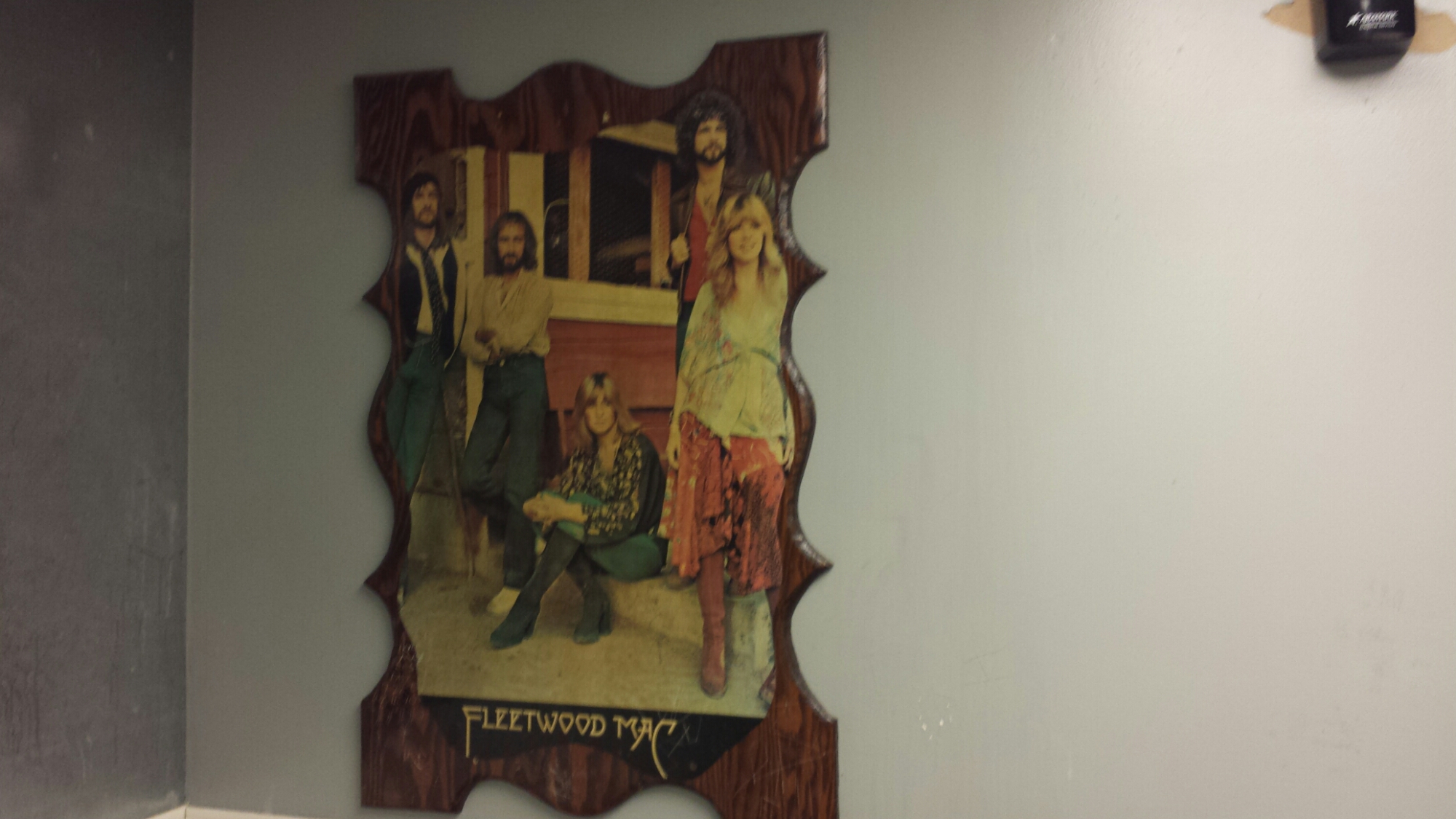 Yes, that is wooden Fleetwood Mac art in the men’s room stall.
