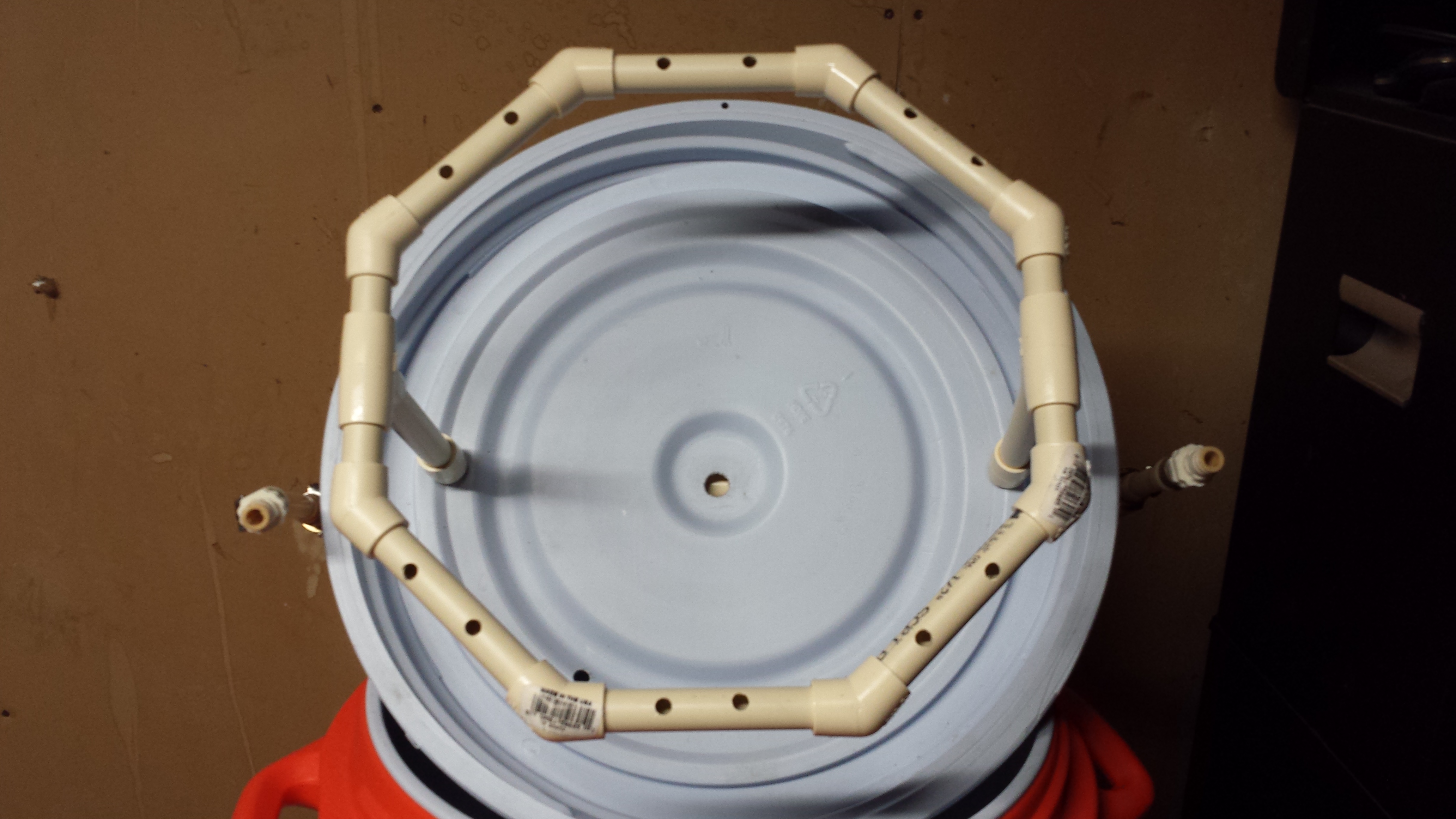 Once the wort passes through the top portion or the TIM it will be sprinkled down on the grain bed through this octagonal ring which Brian constructed: