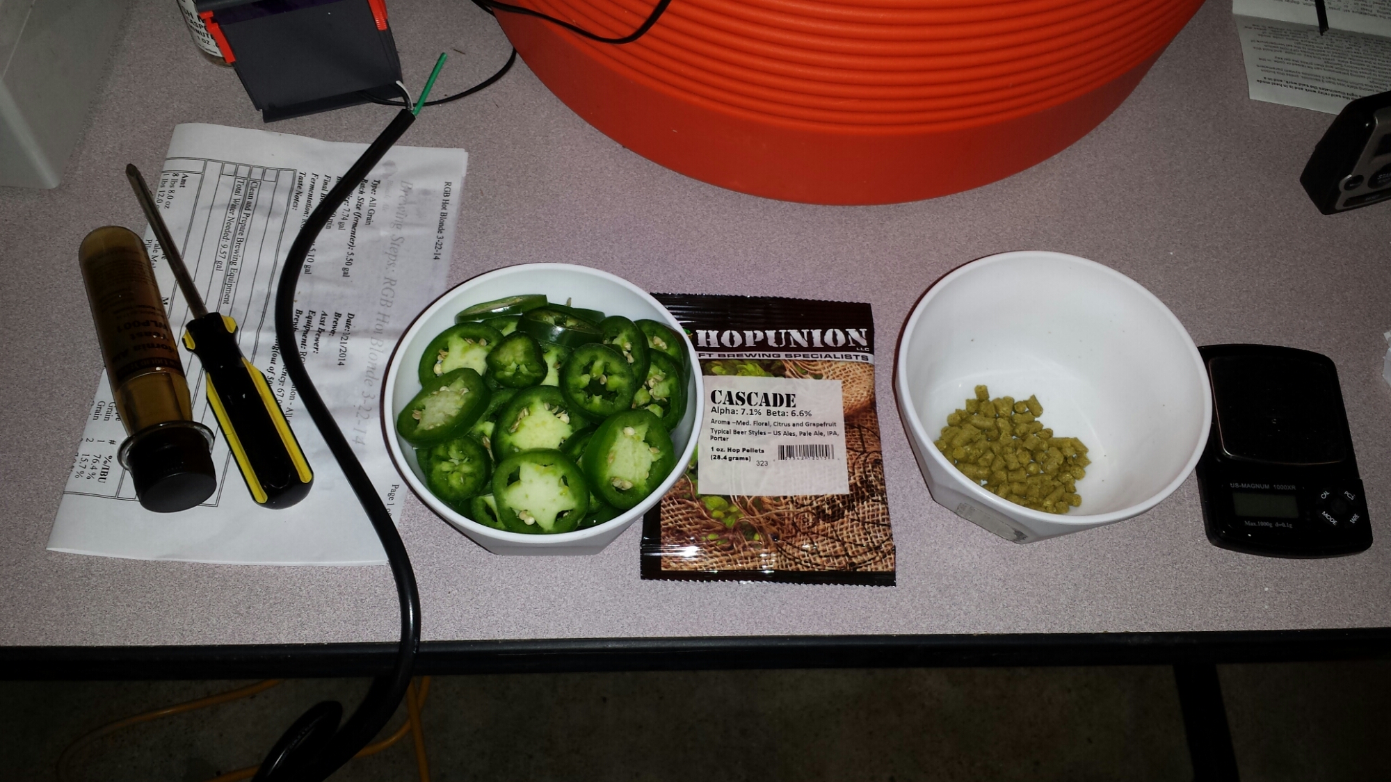 Yep, you guessed it! It’s time for me to update you on the weekend happenings of Regular Guy Brewing. Friday night we got together and brewed our Hot Blonde Jalapeño Blonde Ale.