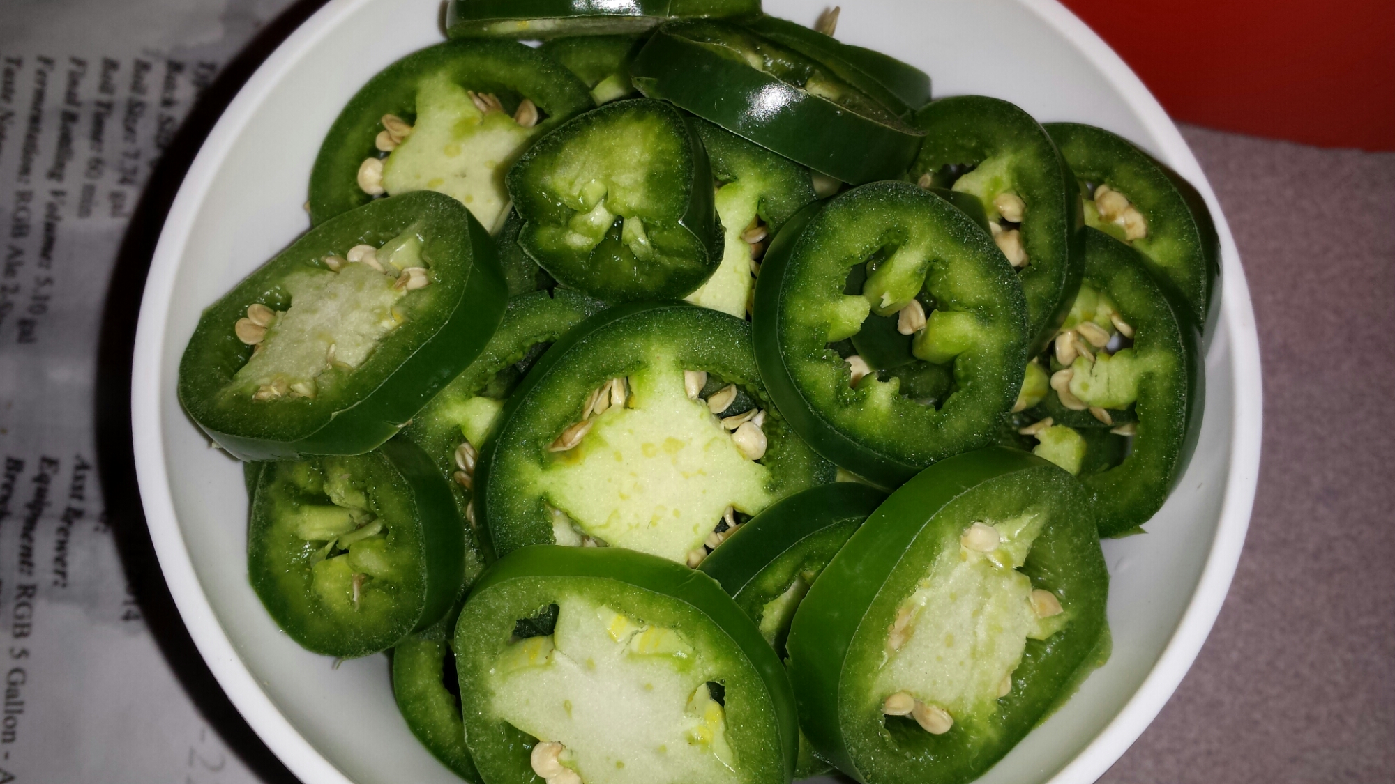 Jalapeño close up. Six ounces of fresh jalapeños for the boil.