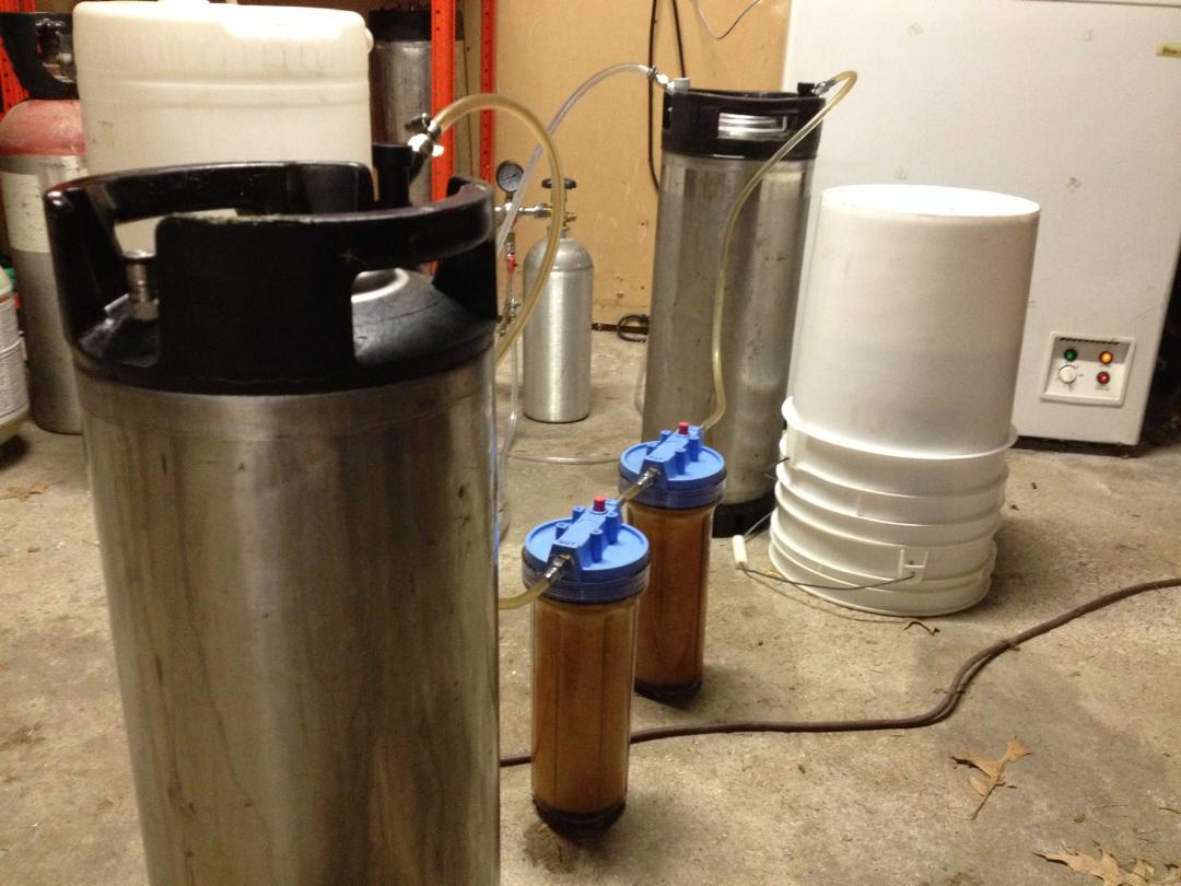 While I don’t have many pictures of the actual beer being brewed because I had to leave early, Brian was nice enough to send me a couple of photos of the EPA being filtered and kegged.