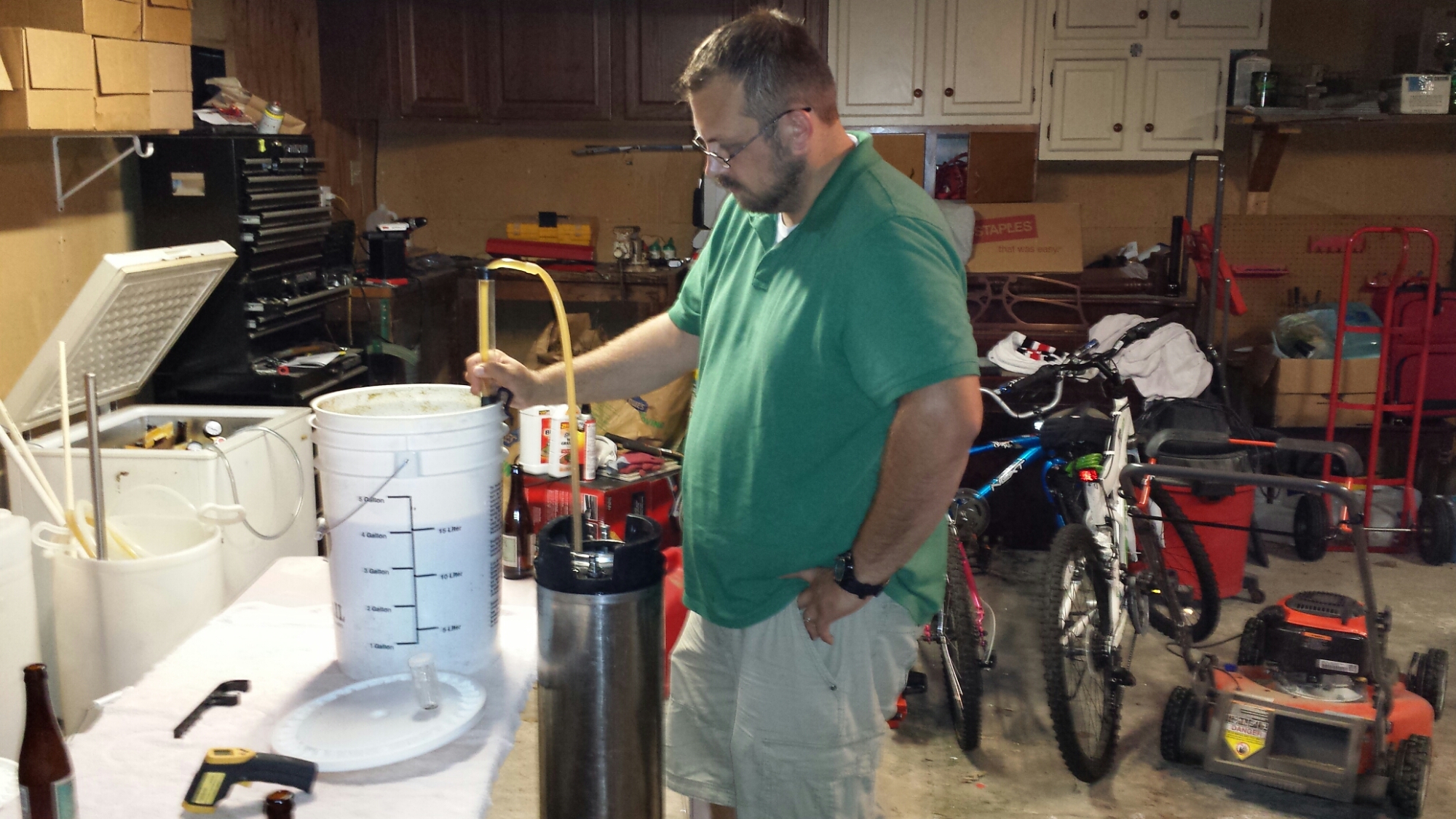 Brewmaster Seth is overseeing the transfer of the EPA to keg number one.