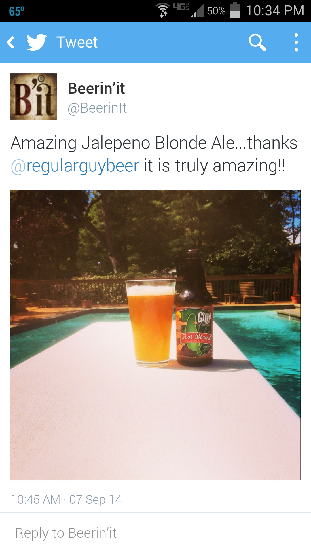 Two beers positively reviewed from two different parts of the country, not a bad start for Regular Guy Brewing! Nick has two more reviews coming, one for our Hot Blonde Jalapeño Blonde Ale and one for our currently unnamed and not quite finished EPA. I’ll share those as they become available.