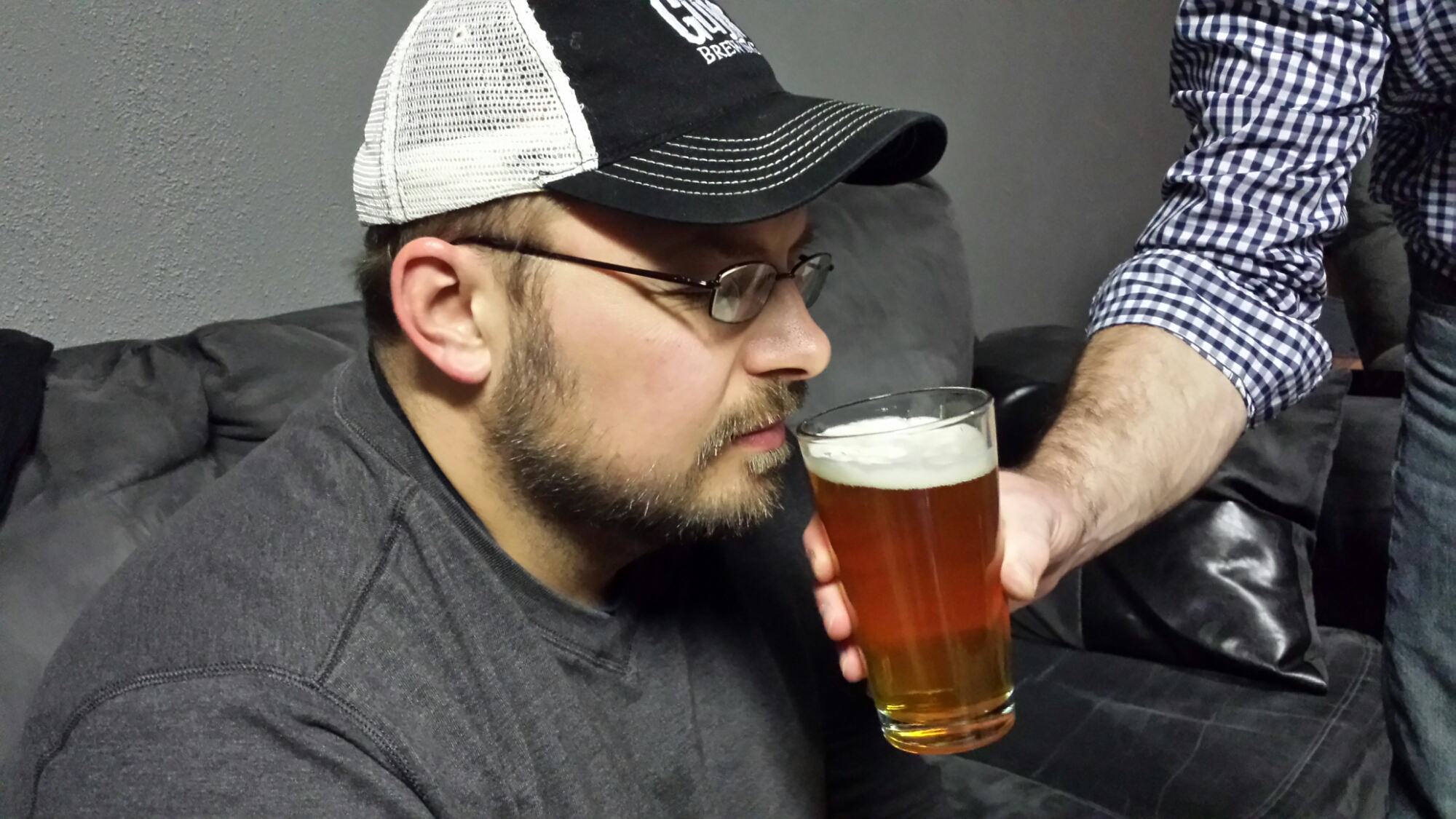 We used Avery’s India Pale Ale for this battle of epic proportions. We performed this blind smell test on the honor system, no blindfold, just close your eyes and don’t be a douche and peek. Seth held the glass up to Brian’s nose so he couldn’t feel the difference in the glass and Brian did the same for Seth. They got to choose which would be glass “A” and which would be glass “B”. Let’s see what happened, shall we?