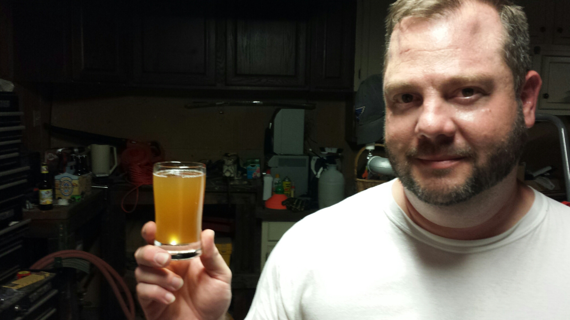And here’s Brian showing off the Hot Blonde in its fermented but uncarbonated state. It tasted fantastic by the way.