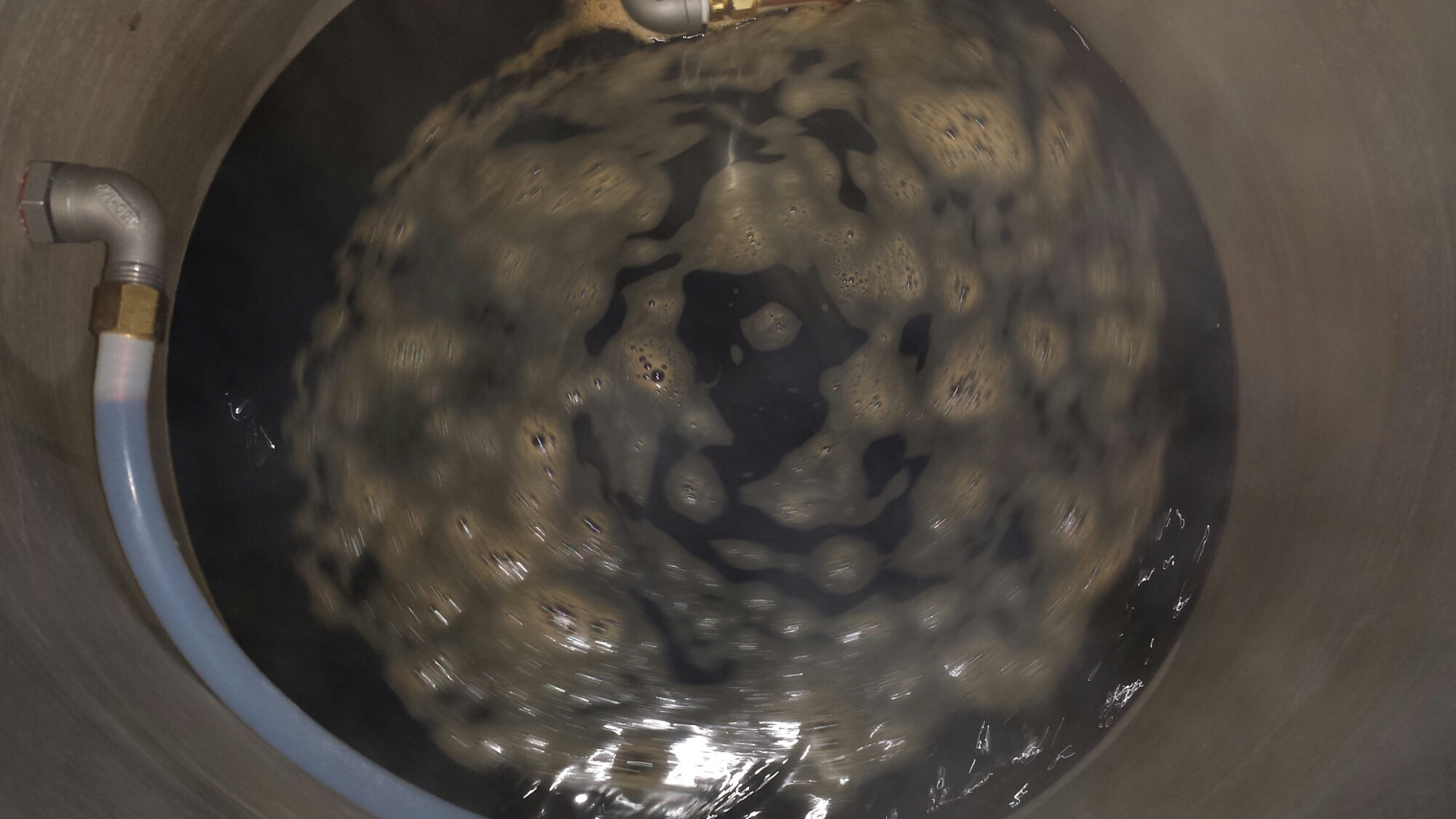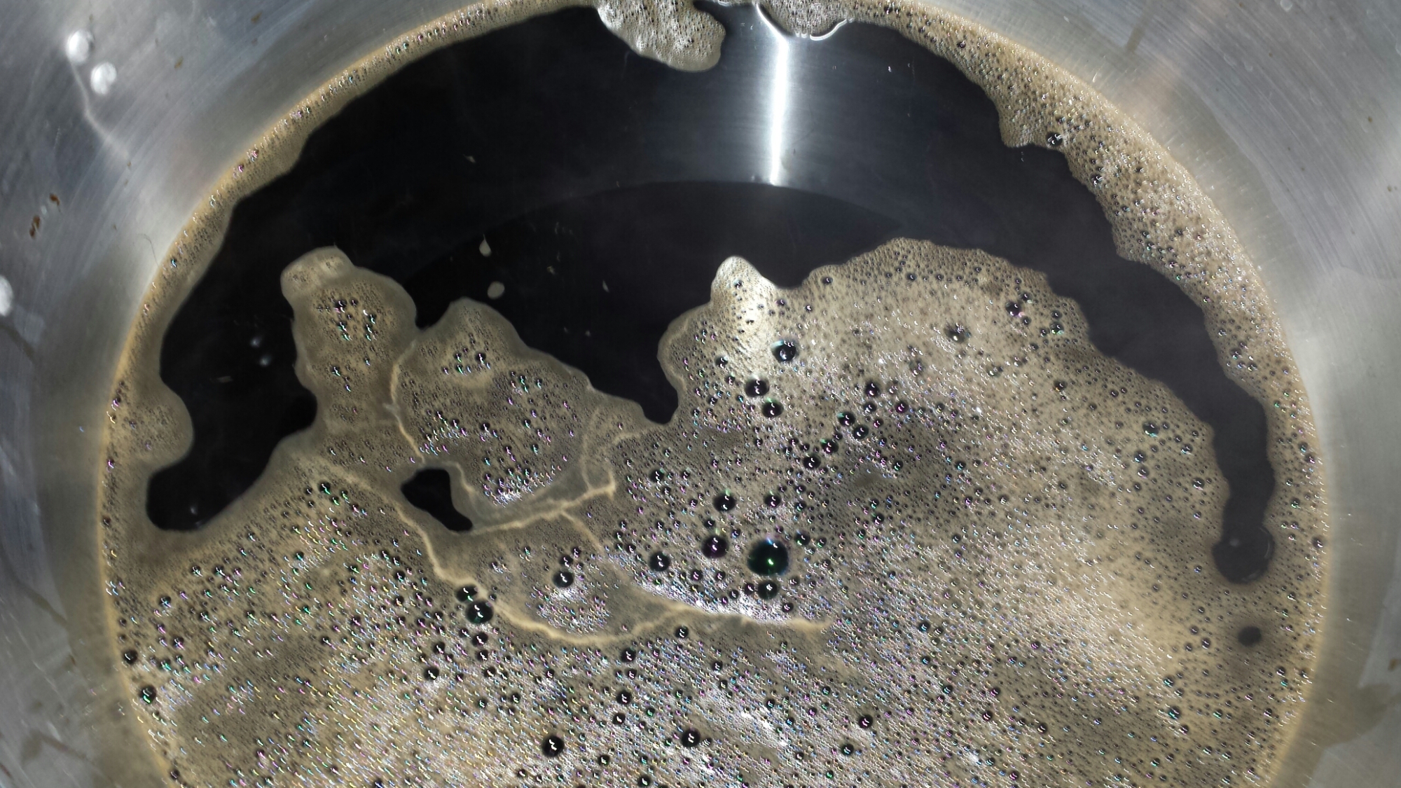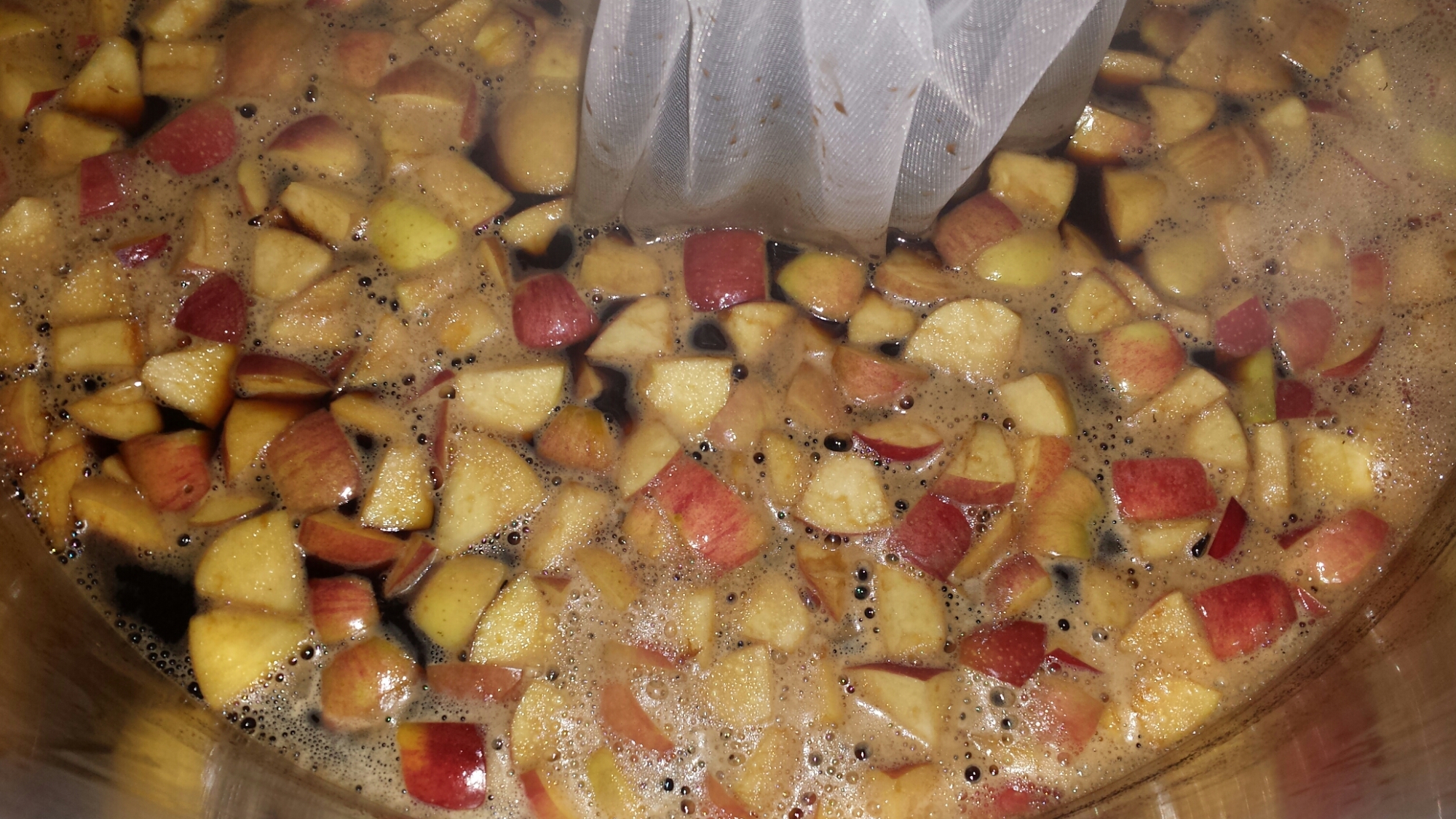 Here’s the apples swimming around in that beautiful black wort! The aroma coming out of the kettle was amazing!