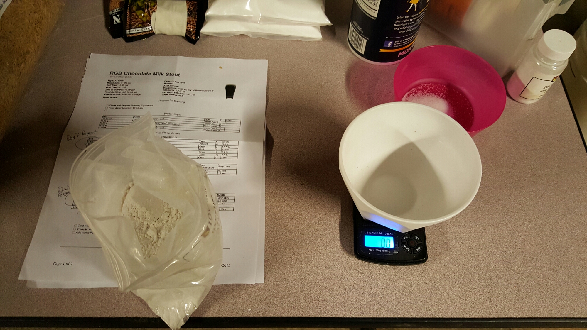We brew at Brian’s house and we thought, how do we thank Kate for putting up with us until the wee hours of the morning practically every Friday night? With beer of course! Kate likes big, dark beers and we think this one will suit her just fine. What do you think?