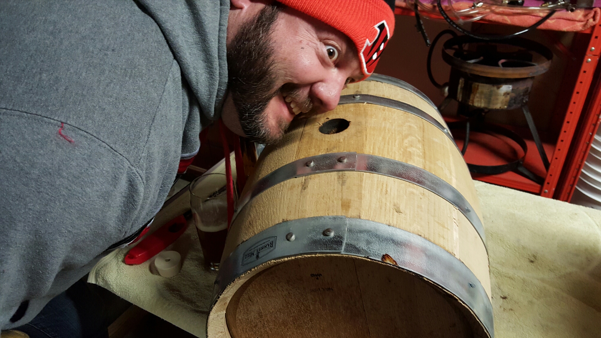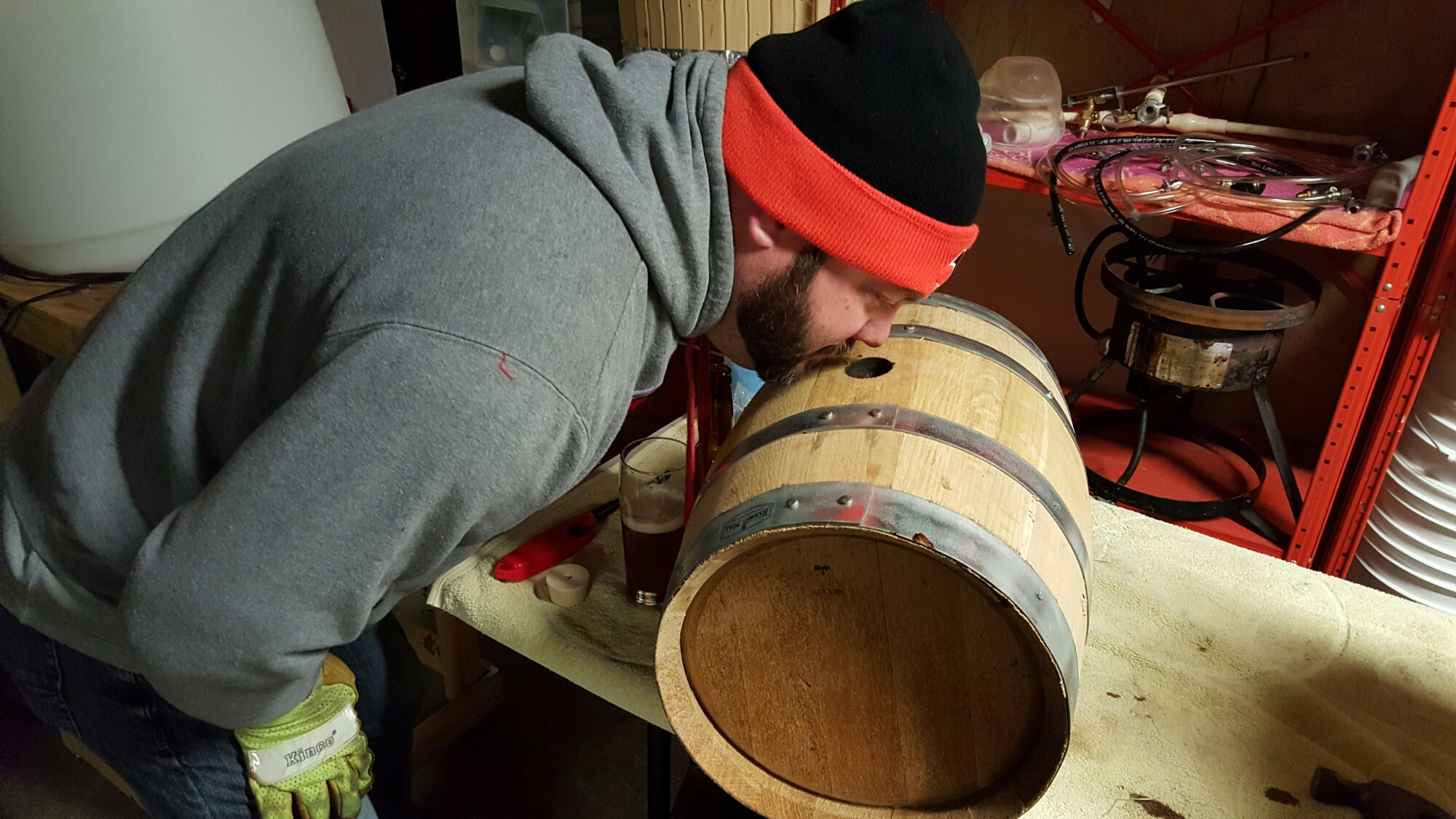 Brian giving the barrel a sniff test.