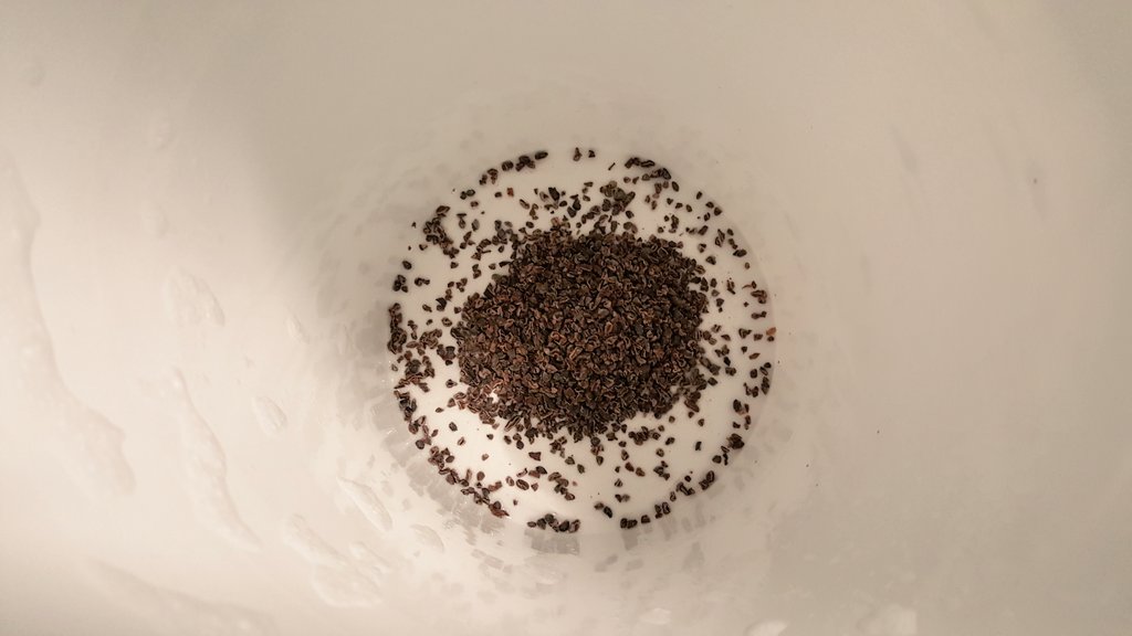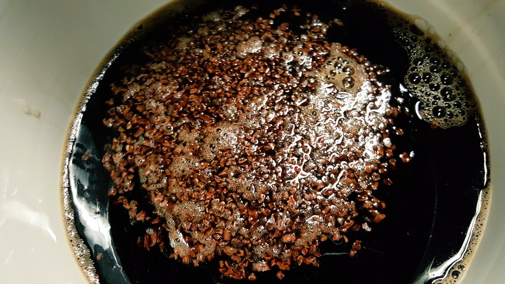 We begin to transfer this beautiful beast on the cocoa nibs.