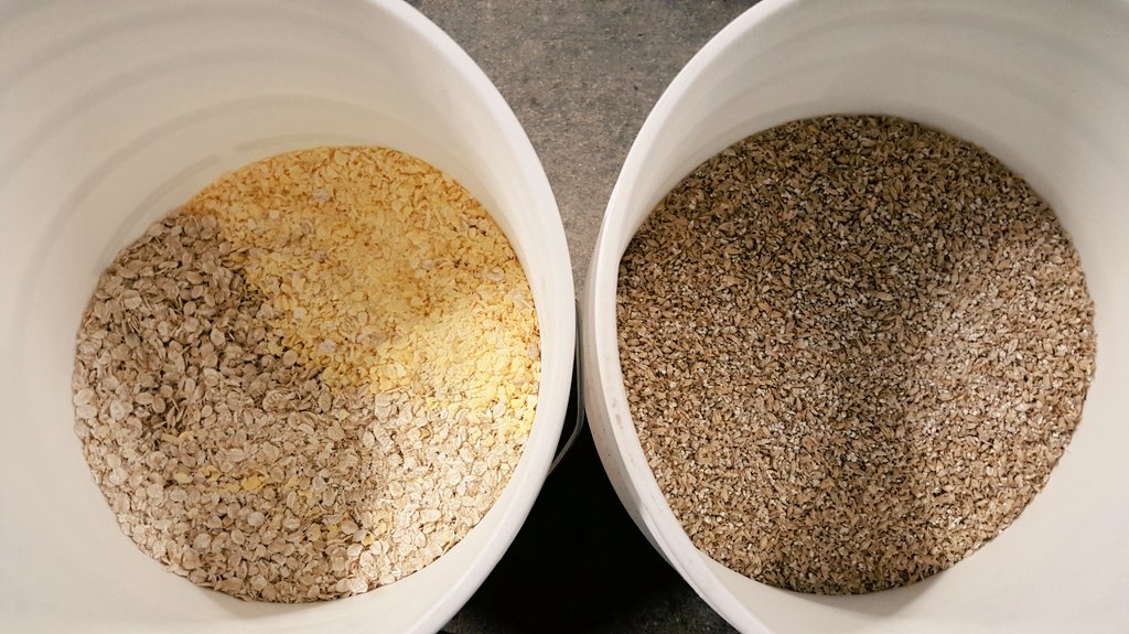 Grains and flaked barley and flaked corn all crushed and ready for the mash.