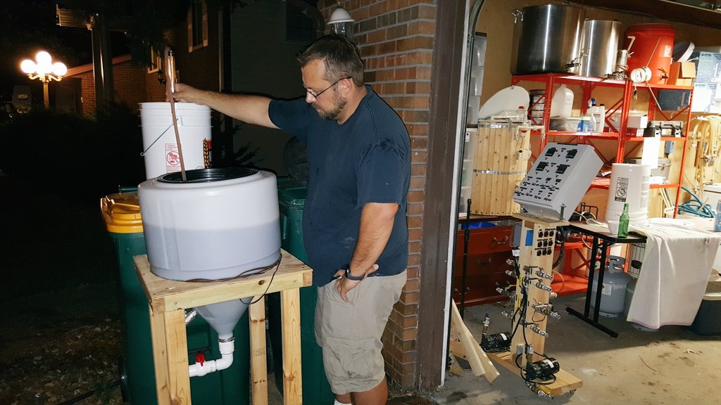 Filling up the conical to mix the three buckets of the Red Rye-der.