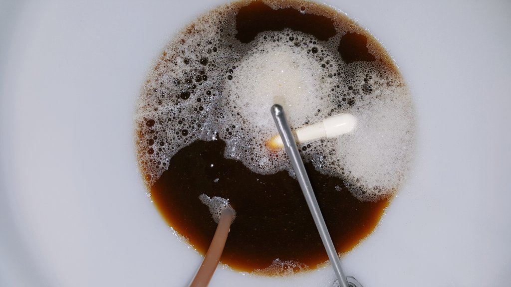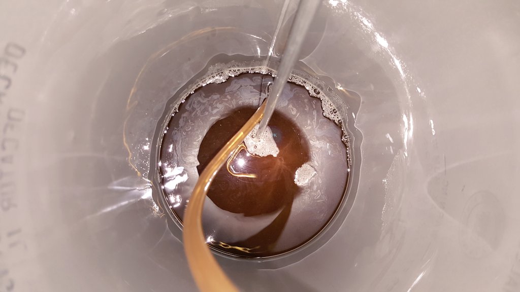 Here’s a closer look at the beer going through the filters. Pretty beer!