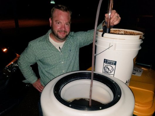 Brian transferring to the conical before filling the kegs.