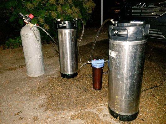 Our next scheduled task was to filter and keg our oatmeal raisin brown ale and that took place on July 15th. July 15th was also the day I was in Minnesota visiting some friends. Brian and Seth took over the picture taking duties while I was gone. Here’s their handiwork.