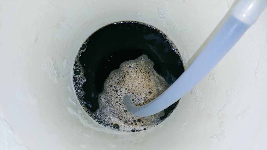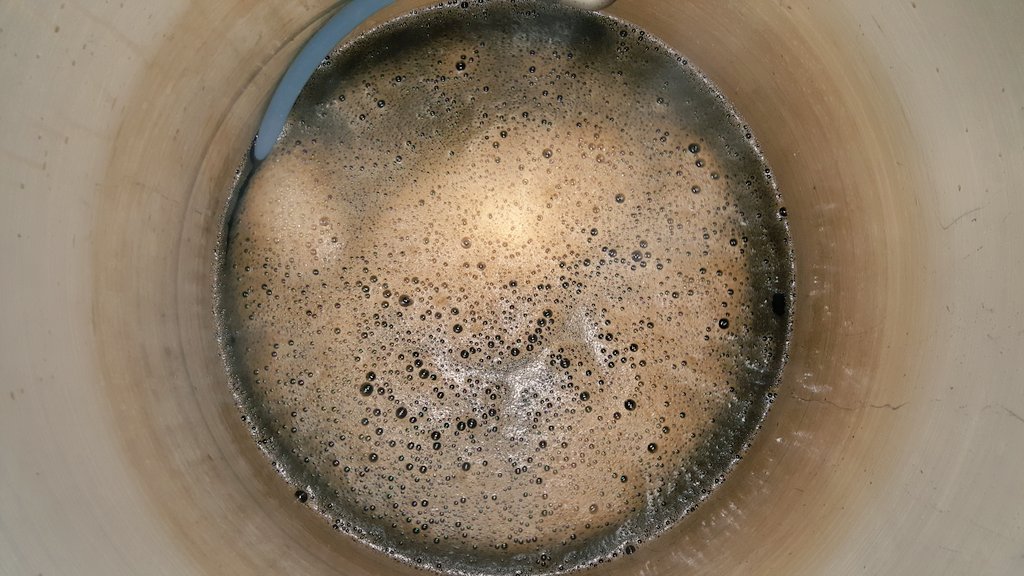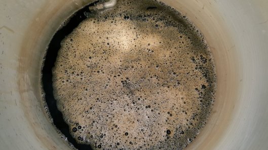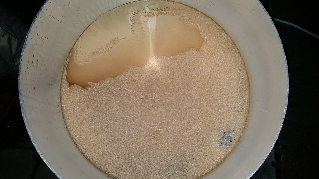 Getting very close to boiling! Rich chocolate and coffee aromas are filling the garage at this point.