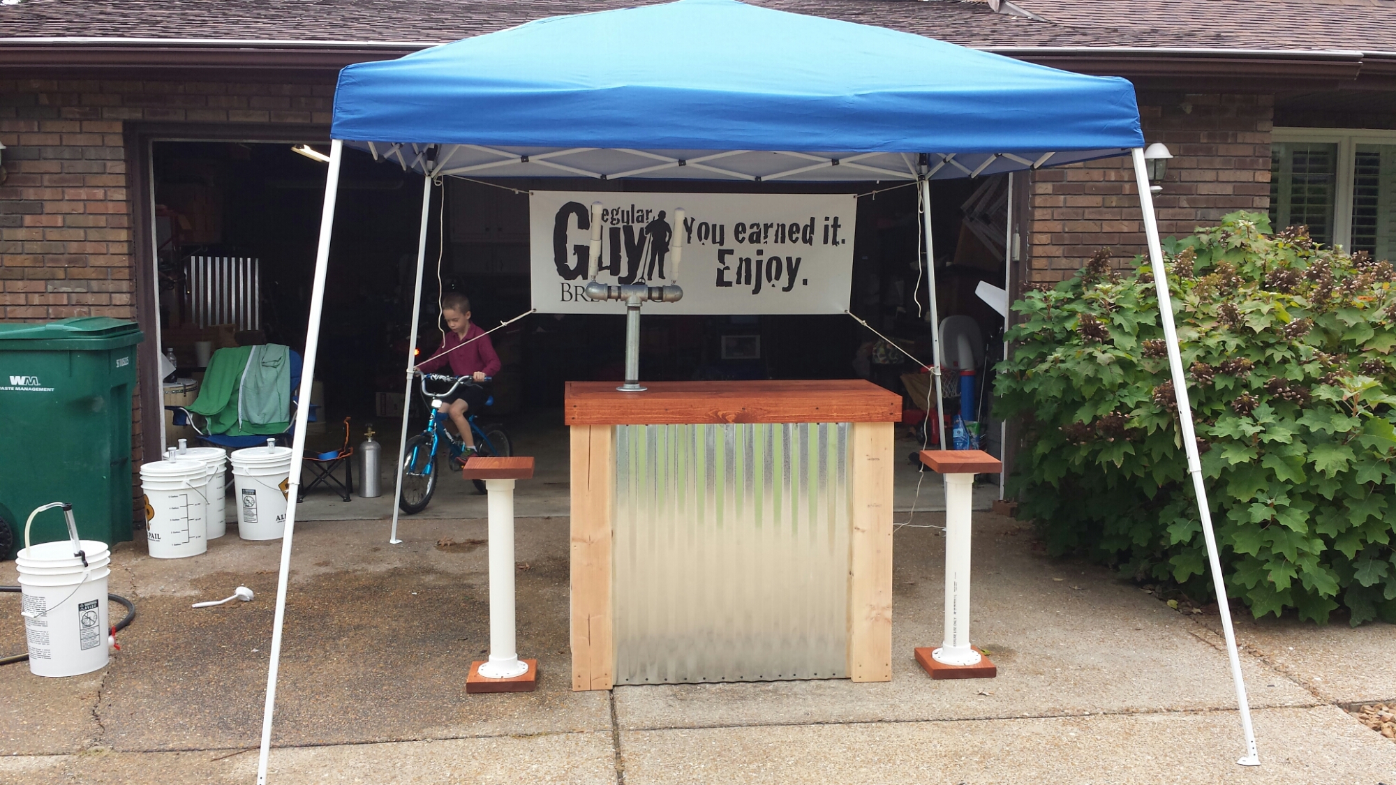 Even closer yet. The two stands on the side will be for our vote collection containers, one for each beer we’re bringing to the competition.