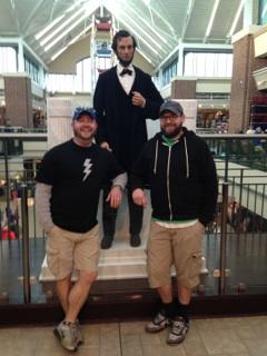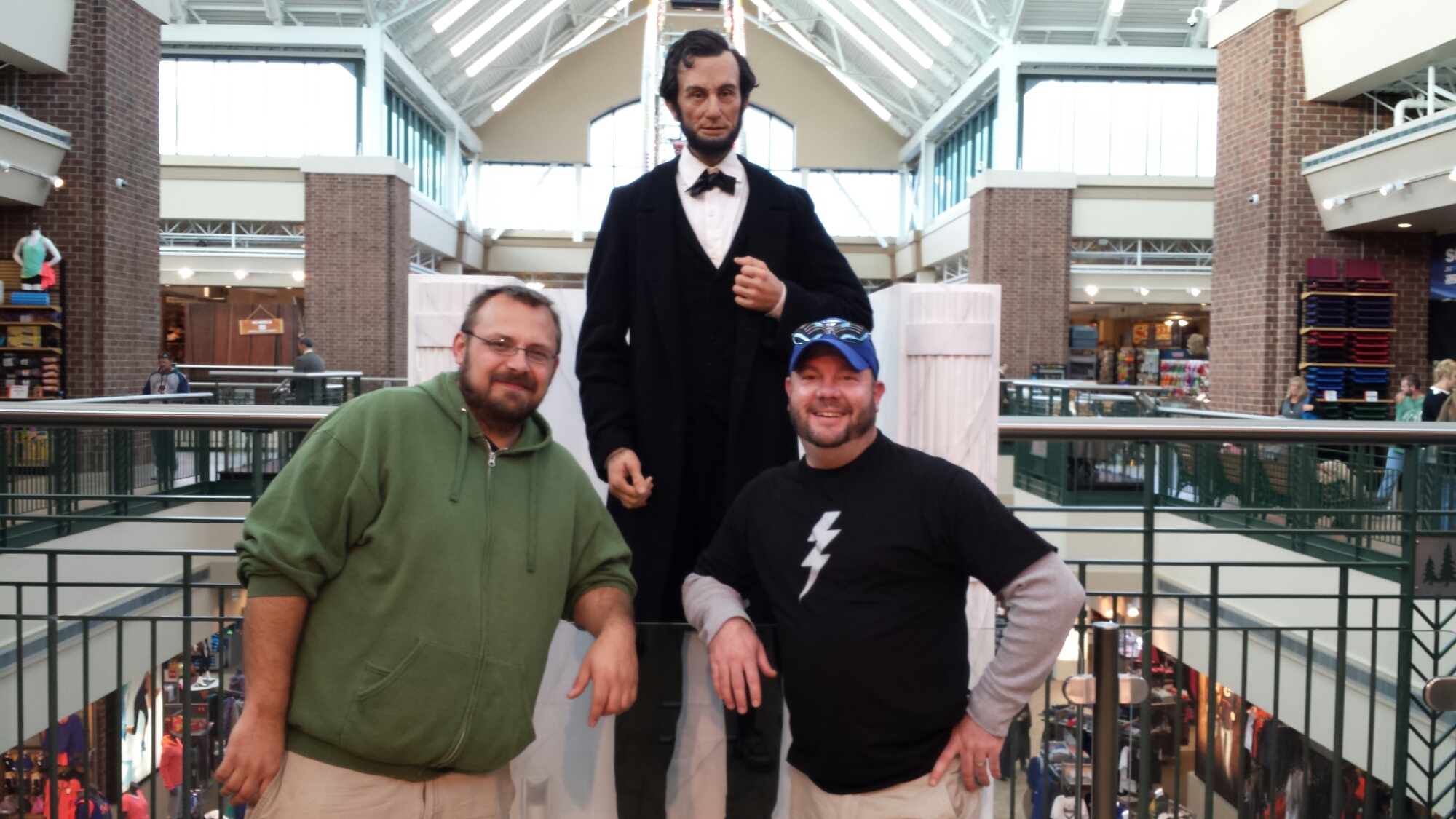 Posing with honest Abe Lincoln at Scheels. Scheels is probably the biggest sporting goods store ever. It has a ferris wheel inside.